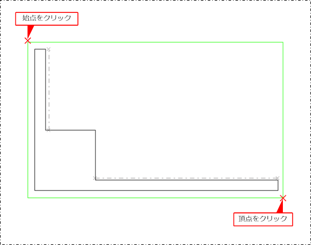 線が交差しないように、頂点をクリックして範囲を指定します。