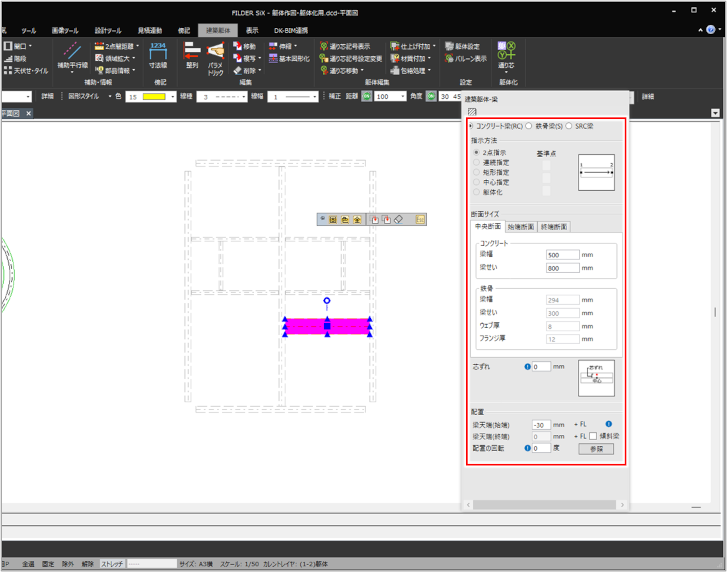 設定項目は躯体を作図するときに使用するダイアログと同じです。設定項目について、詳しくは以下を参照してください。
