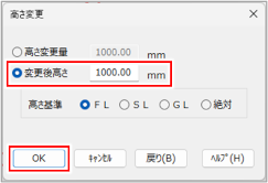 [高さ変更]ダイアログが表示されます。変更した高さが[変更後高さ]に反映されます。