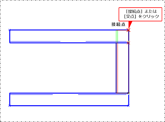 溶接する鋼材の[接続点]または[交点]をクリックします。