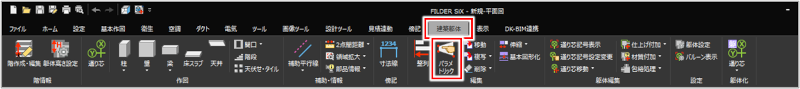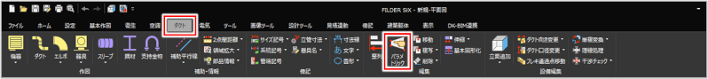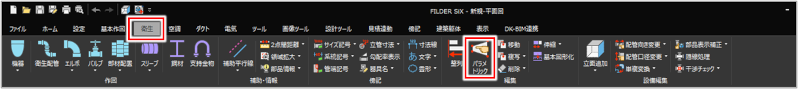 [基本作図]タブ>[パラメトリック] [衛生]タブ>[パラメトリック] [空調]タブ>[パラメトリック] [ダクト]タブ>[パラメトリック] [電気]タブ>[パラメトリック] [建築躯体]タブ>[パラメトリック] |