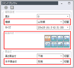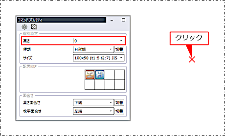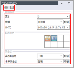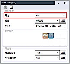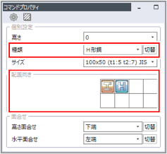 [コマンドプロパティ]の[種類]で[H形鋼]を選択し、[配置向き]で鋼材を配置する向きを選択します。