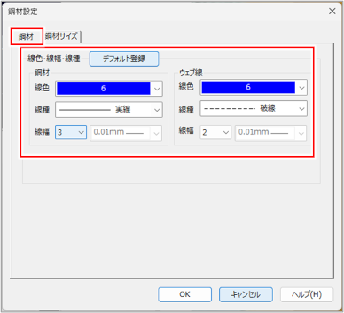 鋼材とウェブ線の線色、線種、線幅を設定します。 |