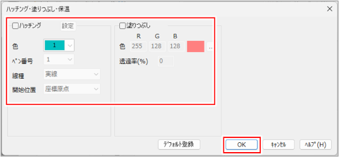 ハッチング・塗りつぶしの設定を行い、[OK]ボタンをクリックします。