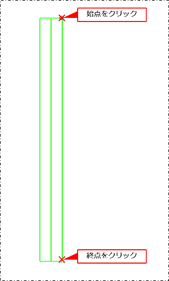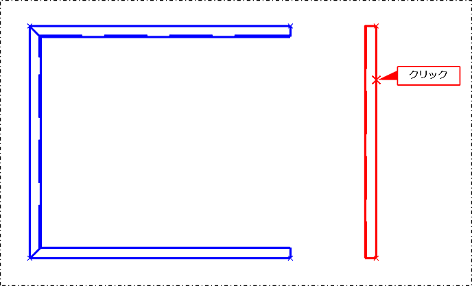 仮表示で高さ方向の鋼材が表示された状態で2点目をクリックします。