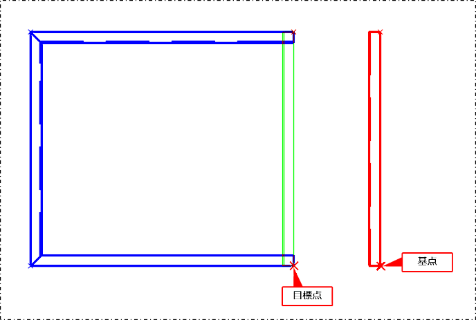 水平方向の面合せ基準を、[左端][右端]から選択します。[切替]ボタンで切り替えられます。[Alt]キーを押しながら左クリックしても切り替えられます。 |