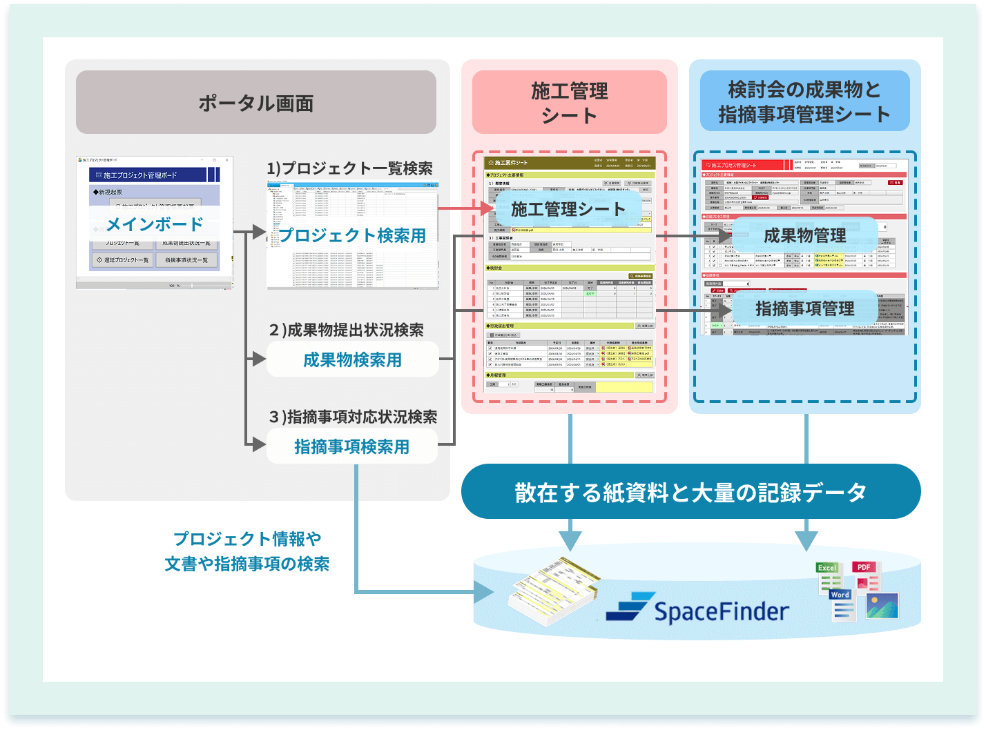 テンプレートや関連資料もデータベースに格納し、データ検索を活用することで、情報を効果的に活用しながら仕事を進める環境を作り、業務効率化を支援します。