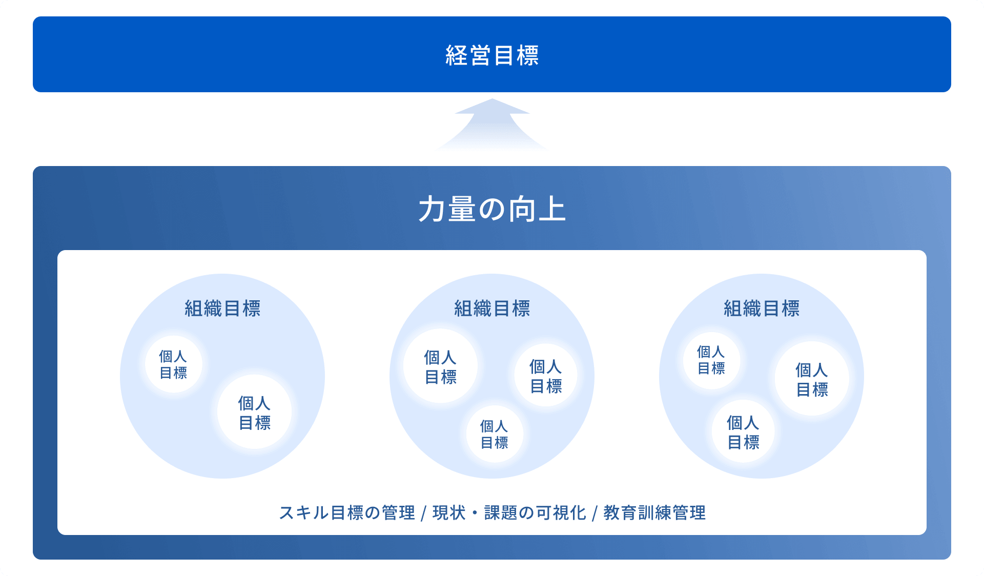 事業戦略に沿った、組織・個人のスキル目標と達成状況を一元管理します。