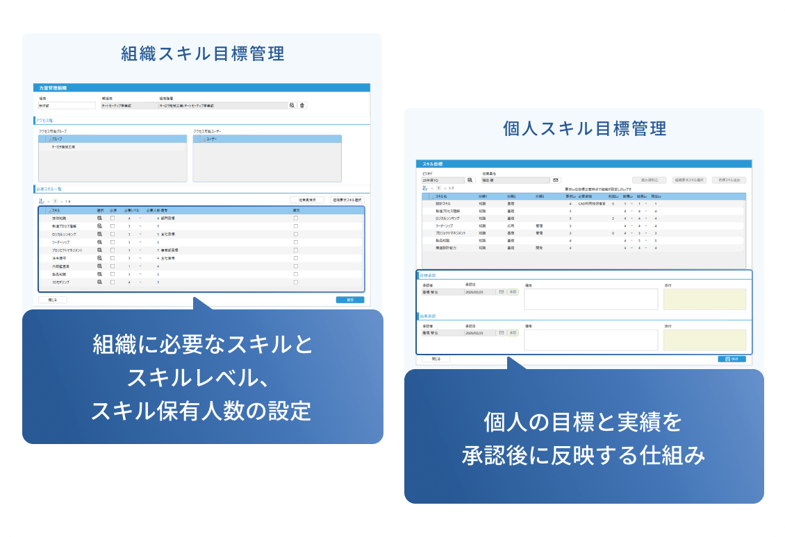 統一された基準でスキル目標を設定し、客観性ある力量管理が可能になります。