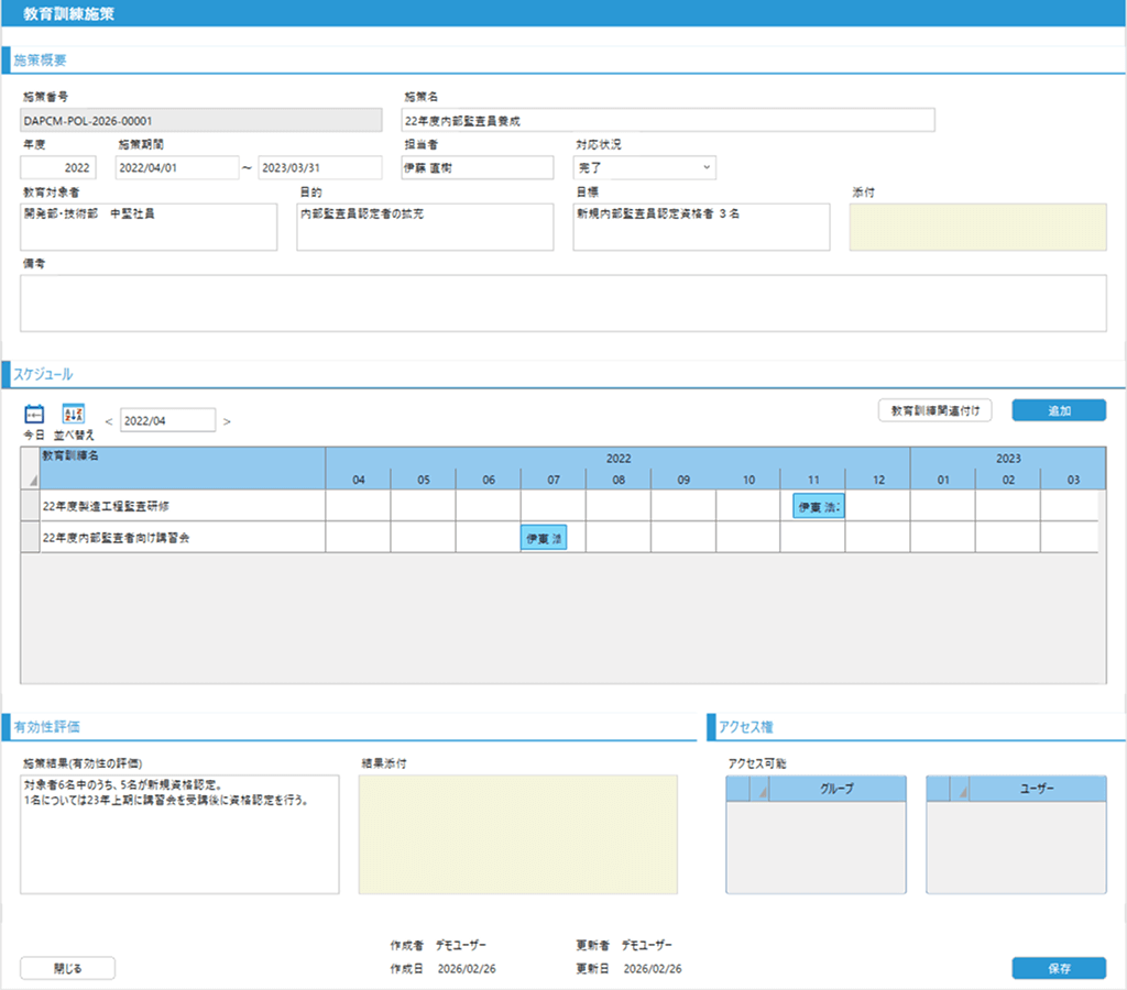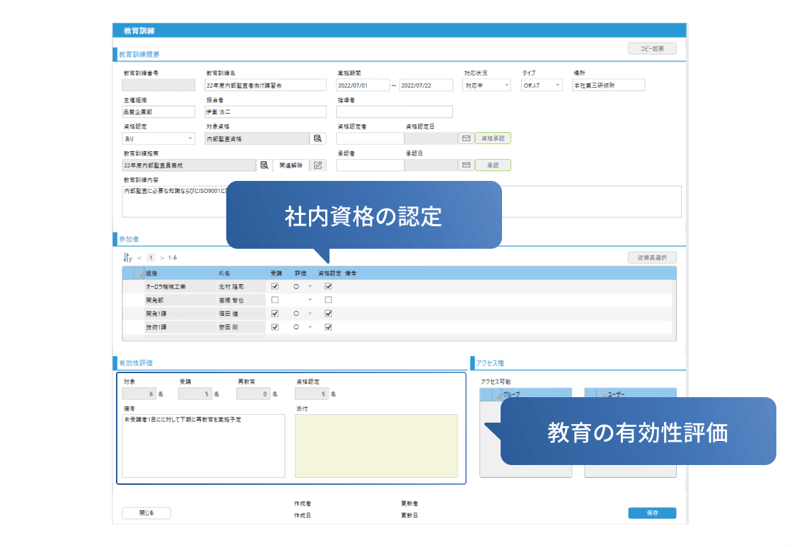 教育訓練の策定・実行から有効性評価まで、一連の活動をサポート。